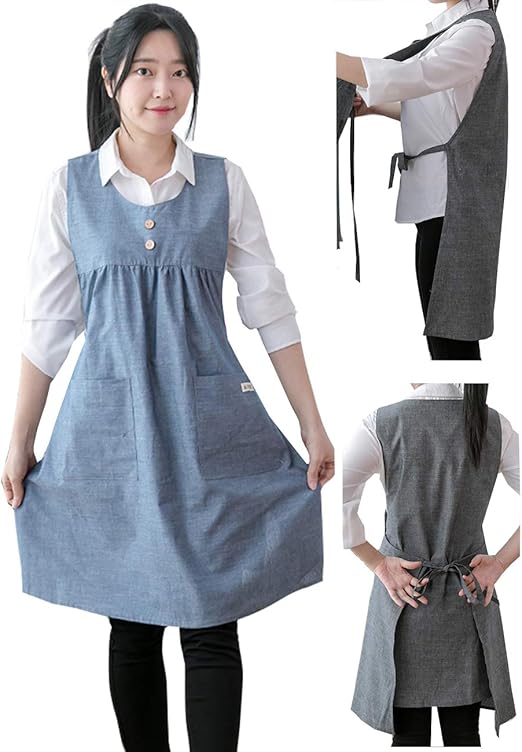 Amazon エプロン 女性用 かわいい スモック おしゃれ 長袖 袖口ゴム