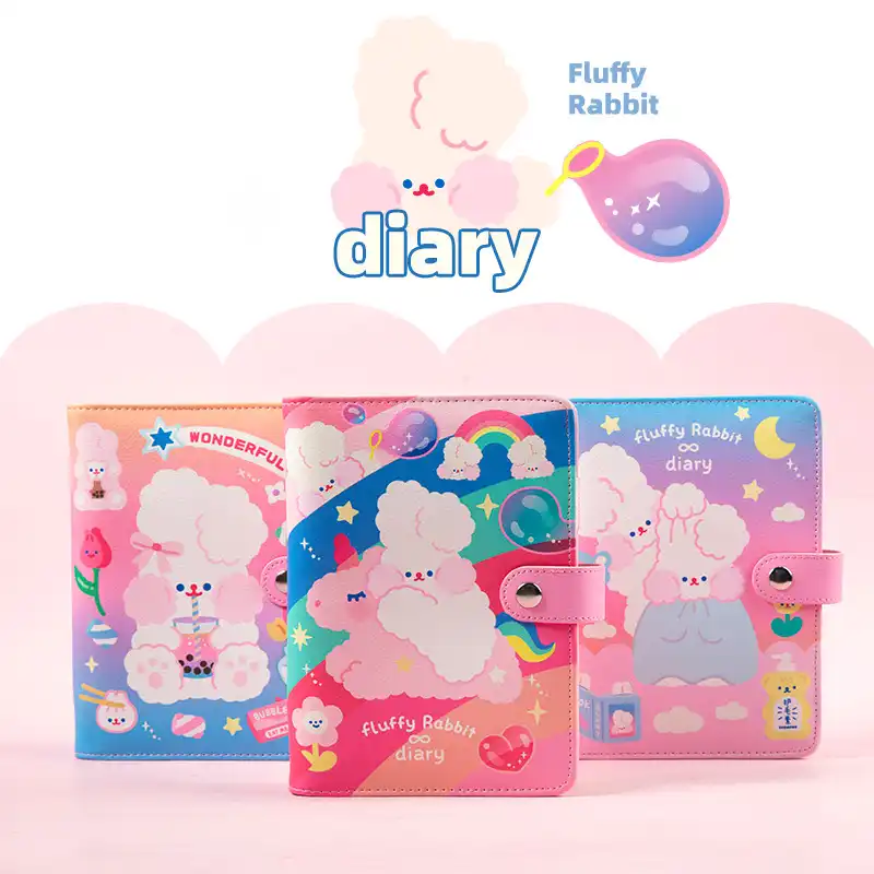 6 リングバインダーノートブックa5 A6 A7 韓国かわいい虹クマカバー
