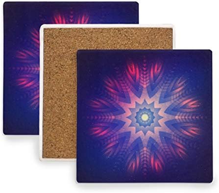 コースター 珪藻土 ヒッピー 曼荼羅 マンダラ 蓮 はす セール特価品 おしゃれ 吸水 エコ素材 茶パッド 断熱パッド コップ敷き ドリンク コーヒー 茶托 角 滑り止め むらさき 方形 速乾 1枚セット 木製 角型 角丸型 コルク 紫