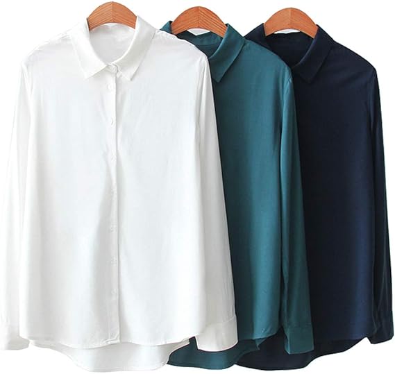 Amazon レディース シャツ 綿 長袖 シフォンブラウス ワイシャツ Tシャツ レディース シフォン 無地 カジュアル シンプル 上品 おしゃれ 白 黒 ターコイズ シャツ ブラウス 通販